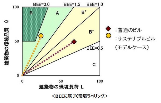 建築物の環境効率(BEE)=建築物の環境性能(Q)÷建築物の環境負荷(L)