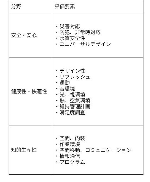 CASBEEウェルネスオフィスの評価内容は、次の通りです。