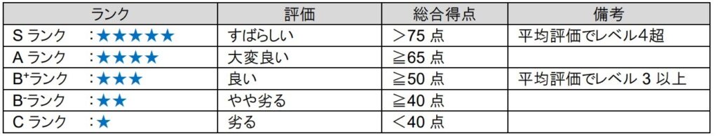 必須項目をすべて満たした不動産は、加点項目の得点に応じて下記の4段階のランクが与えられます。