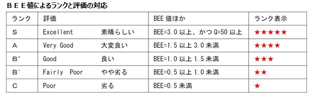 上記項目を評価し、BEE値を算出することで評価ランクが決定します。