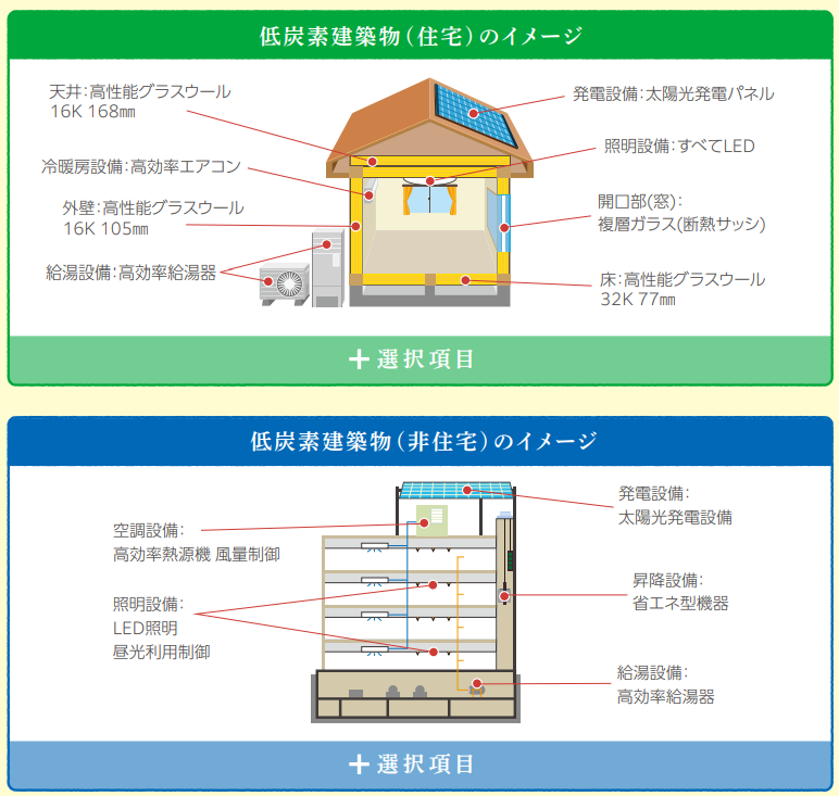 低炭素建築物で選択できる低炭素化措置