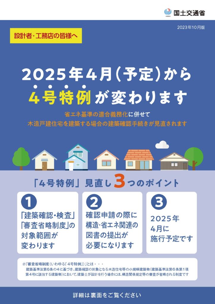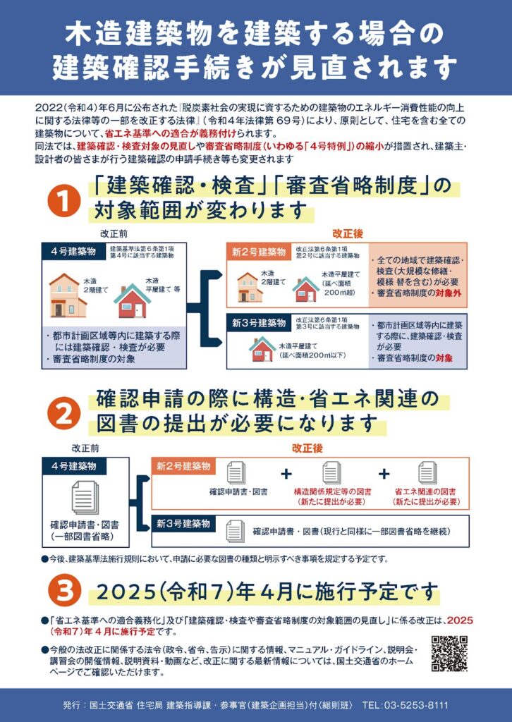 同時に、いわゆる「4号特例」も縮小されました。旧4号建築物は「新2号」「新3号」に2分され、建築確認・検査および審査省略制度の対象が変更になっています。新2号に該当する建築物は、構造関係規定図書や省エネ関連図書の提出も求められるようになっています。
