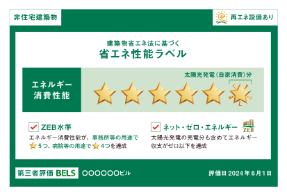 ZEBはBELS評価の一部で、BELS評価の中でZEB基準を満たしている場合、BELSの評価に加えて「ZEB」の表示をすることができます。
