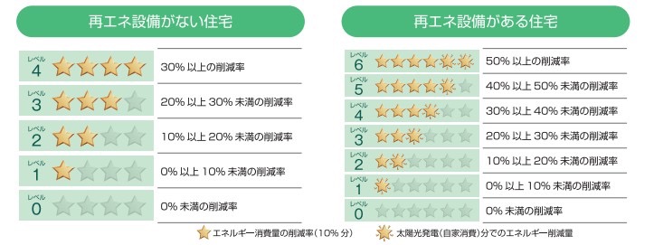再エネ設備がない住宅では星4つで、再エネ設備がある場合は星6つで示すのが特徴です。